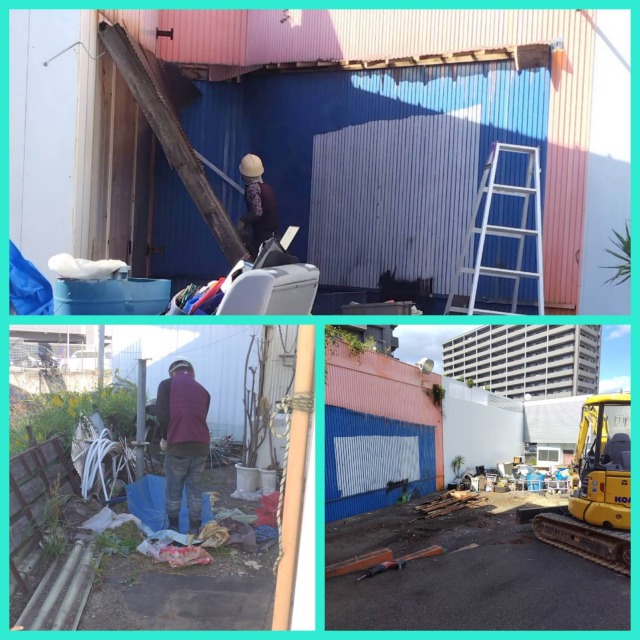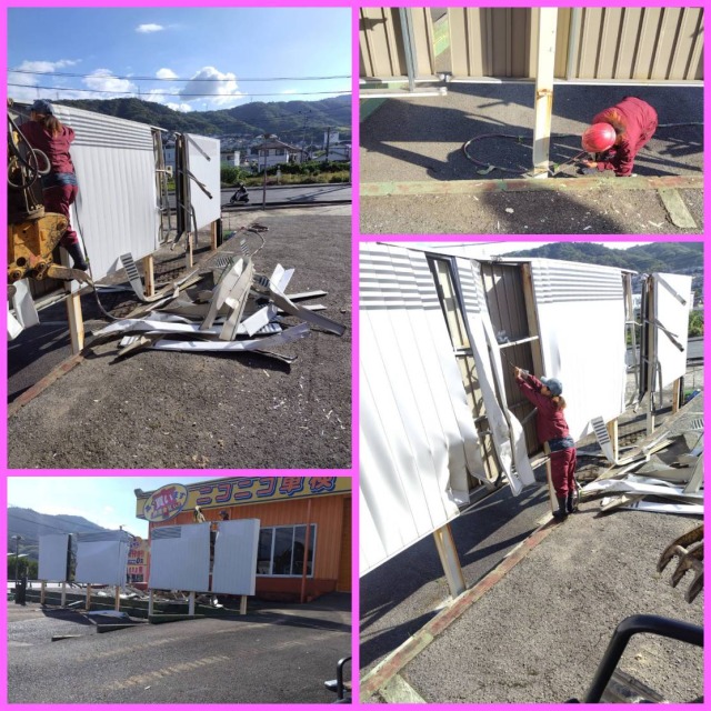 看板や倉庫の解体と残置物撤去がお仕事ですね。